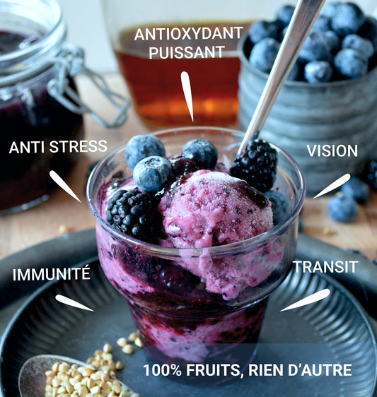 Pris pour mes enfants. Ils adorent ! Je fais des coulis avec et aussi ils en prennet directement dans la main. Dans les salades de fruits c'est bon et sinon en smoothie: pomme, banane, fraise, tout simplement.